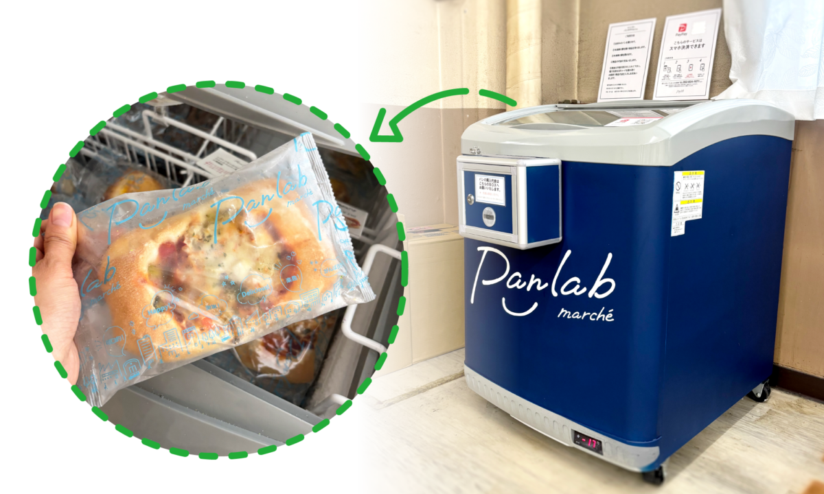いつでも気軽に社内で栄養補給!会社の4階食堂に《オフィスのパン屋さんPanlab》を2025年1月から開店しています。食堂内に冷凍パンを入れる冷凍庫と、それを温めるオーブントースターを設置しています。開店以来、従業員にたいへん好評で、多くの常連も誕生するほど。空腹を我慢することなく適度に栄養を補給できるので集中力も高まり、生産性アップにもつながっているようです。