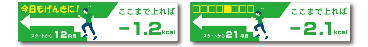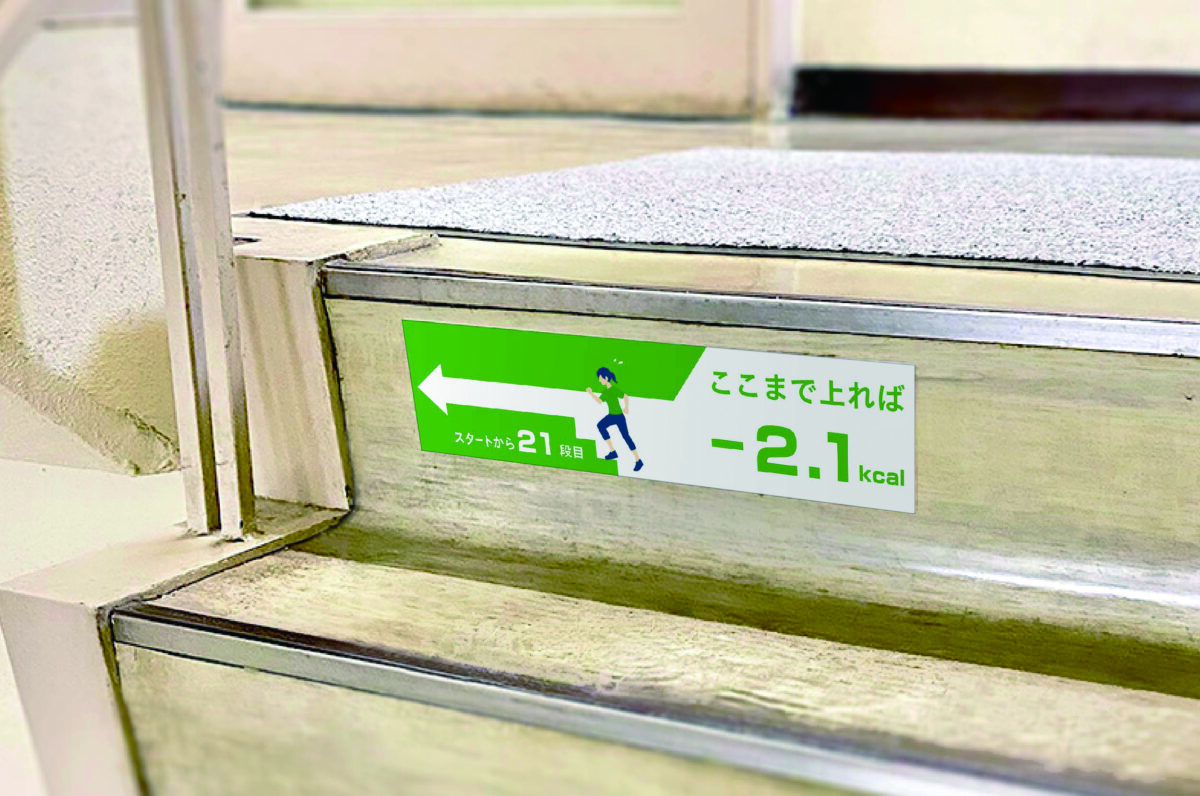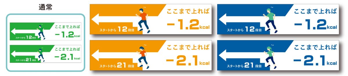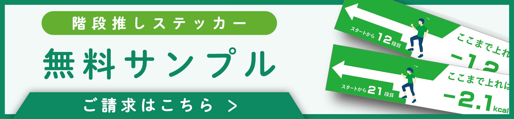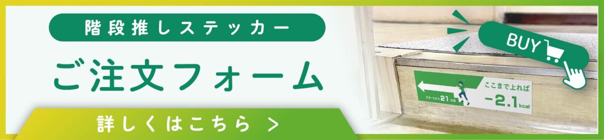 余計なコストをかけることなく、手っ取り早くご用意なさりたい場合は弊社オリジナルの消費カロリー付き「階段推しステッカー」をご注文ください。